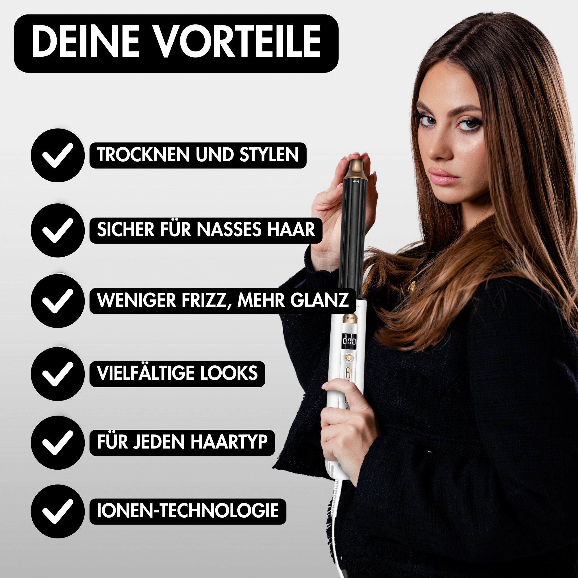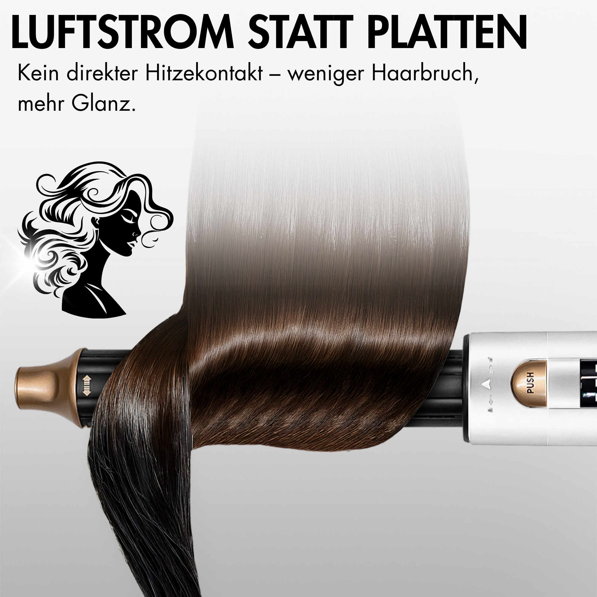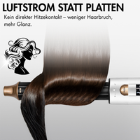 Der Luftstrom verhindert Frizz und bringt den natürlichen Glanz Ihres Haares zum Vorschein.