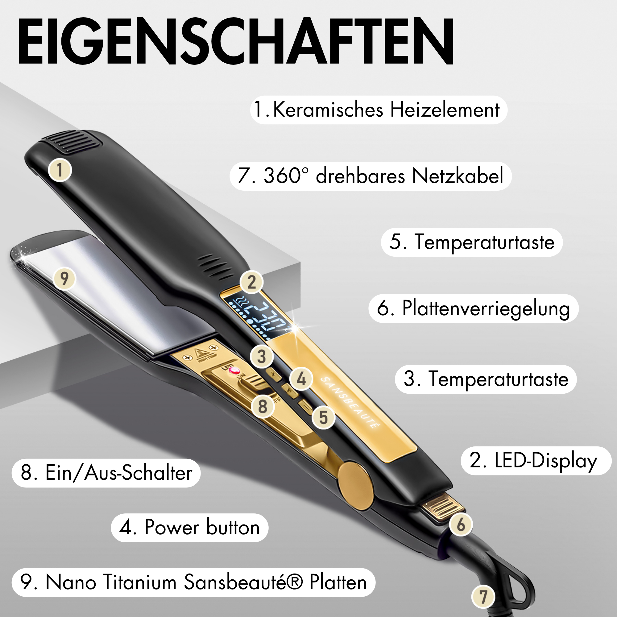 Von 80 °C bis 230 °C – wählen Sie die richtige Hitze für Ihren Haartyp, ohne es zu schädigen.