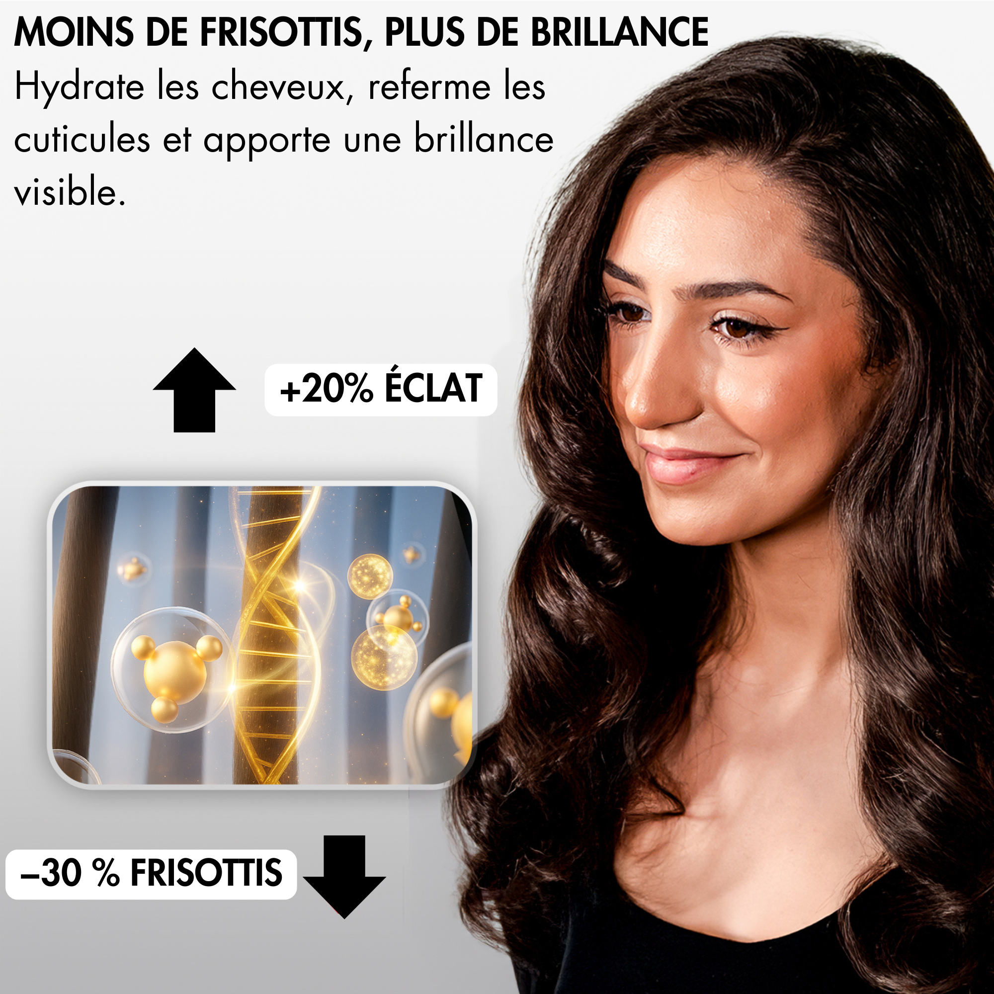 Neutralise les peluches et l'électricité statique, pour des cheveux lisses et brillants.