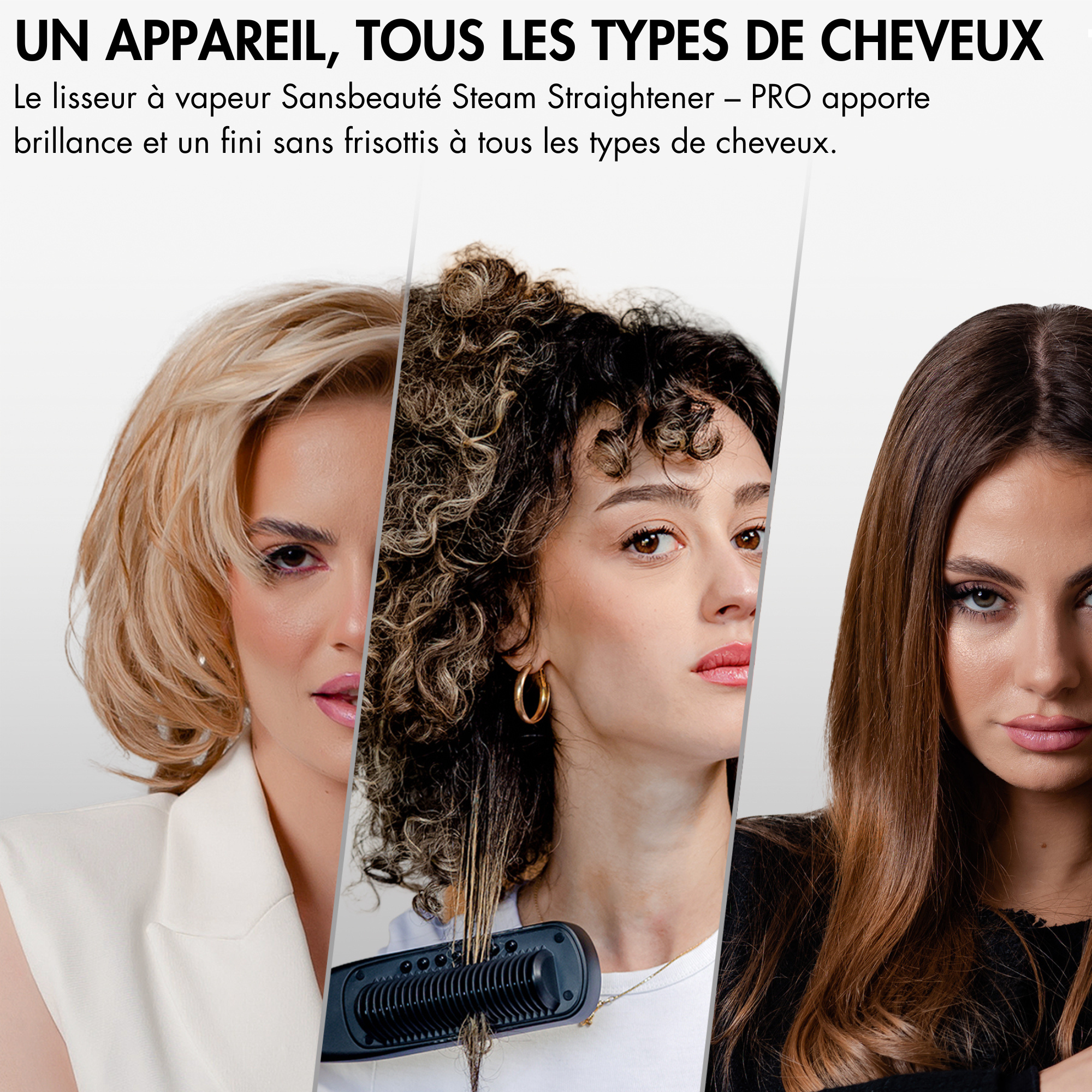 Qu'attendez-vous ? Cliquez sur 'Ajouter au panier' et découvrez à quel point il est simple et rapide de coiffer vos cheveux avec le Sansbeaute® Fer à lisser vapeur PRO.