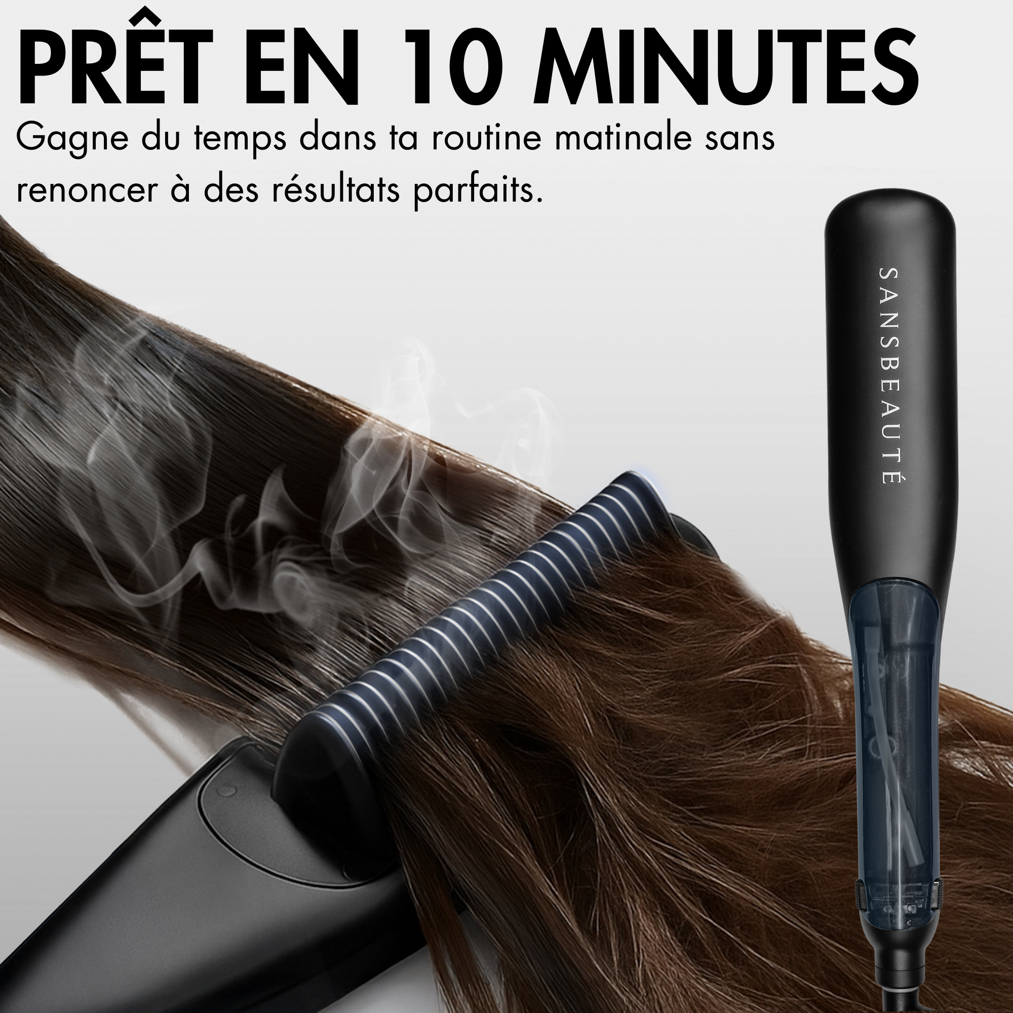 En avez-vous assez de lutter sans fin le matin avec des cheveux frisottis ou sans vie qui perdent leur forme, ou avez-vous peur que la chaleur endommage définitivement vos cheveux ? Avec le Sansbeaute® Fer à lisser vapeur Pro, c'est du passé. La technologie vapeur intelligente hydrate vos cheveux pendant le coiffage, ce qui les rend plus lisses plus rapidement, maintient la coiffure plus longtemps et préserve leur éclat naturel et leur santé. Ainsi, vous gagnez chaque jour un temps précieux, évitez les dommages et profitez de résultats dignes d'un salon, sans visites coûteuses chez le coiffeur, simplement chez vous à un prix abordable.