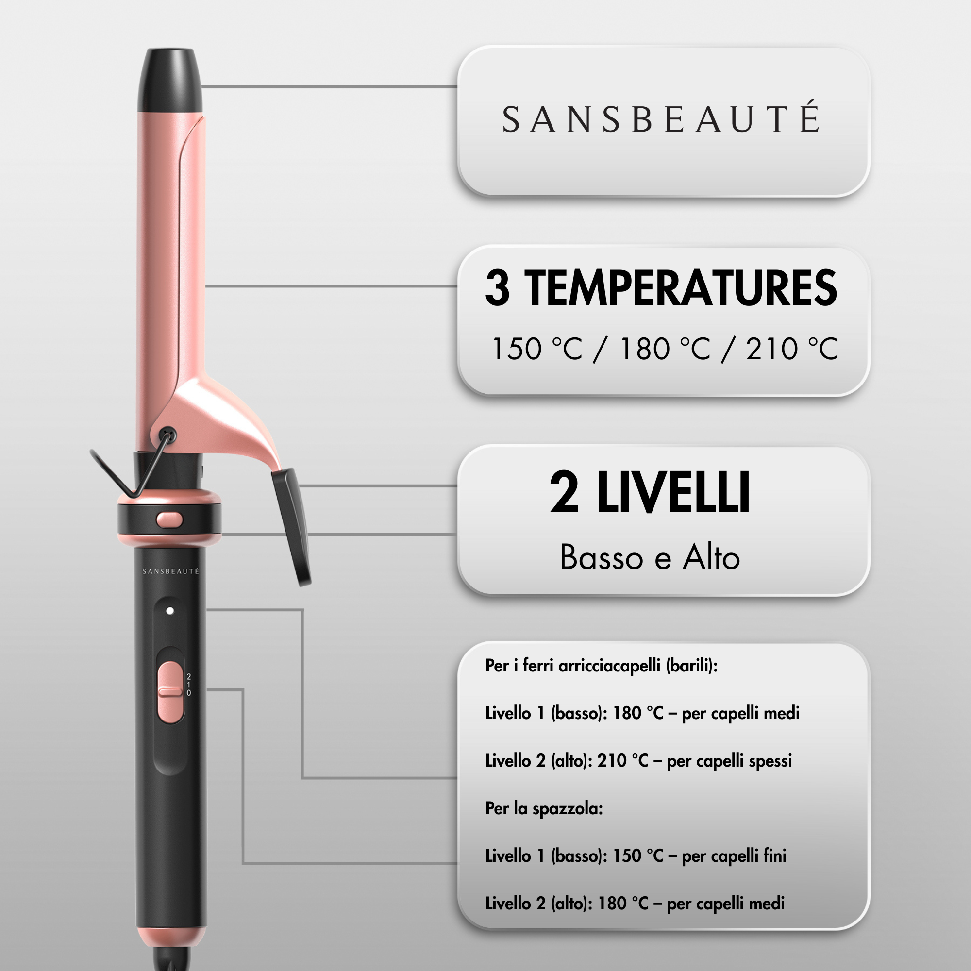 Molte donne lo riconoscono: stai davanti allo specchio per un'ora e dopo mezz'ora i tuoi ricci sono già disfatti. Grazie alla distribuzione uniforme del calore e alle diverse dimensioni degli accessori, Sansbeaute® garantisce ricci che durano davvero tutto il giorno.