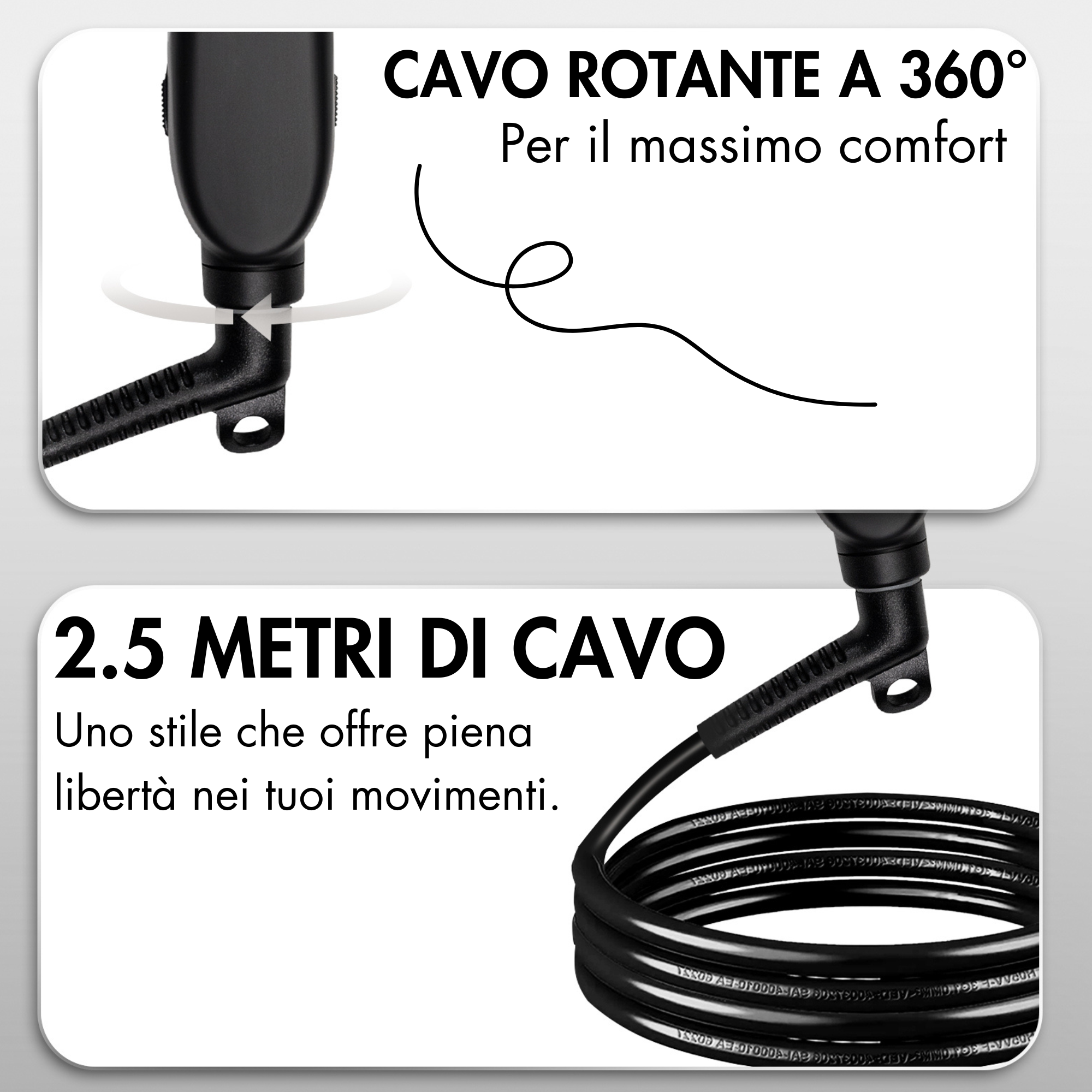 - Sicura e durevole – spegnimento automatico dopo 30 minuti, design robusto e cavo girevole da 1,8 m per un uso confortevole.