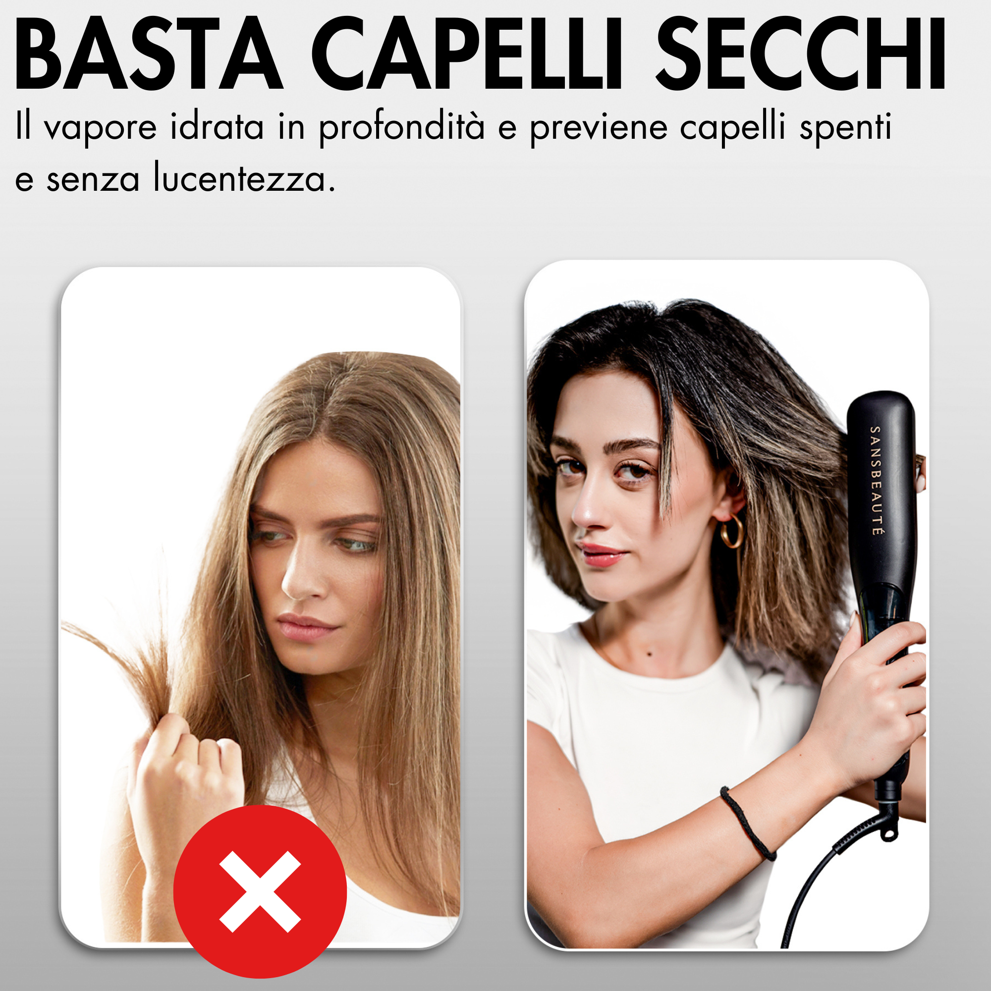 Cosa aspetti? Premi 'Aggiungi al carrello' e scopri quanto è semplice e veloce acconciare i tuoi capelli con la Piastra a Vapore Sansbeaute® PRO.