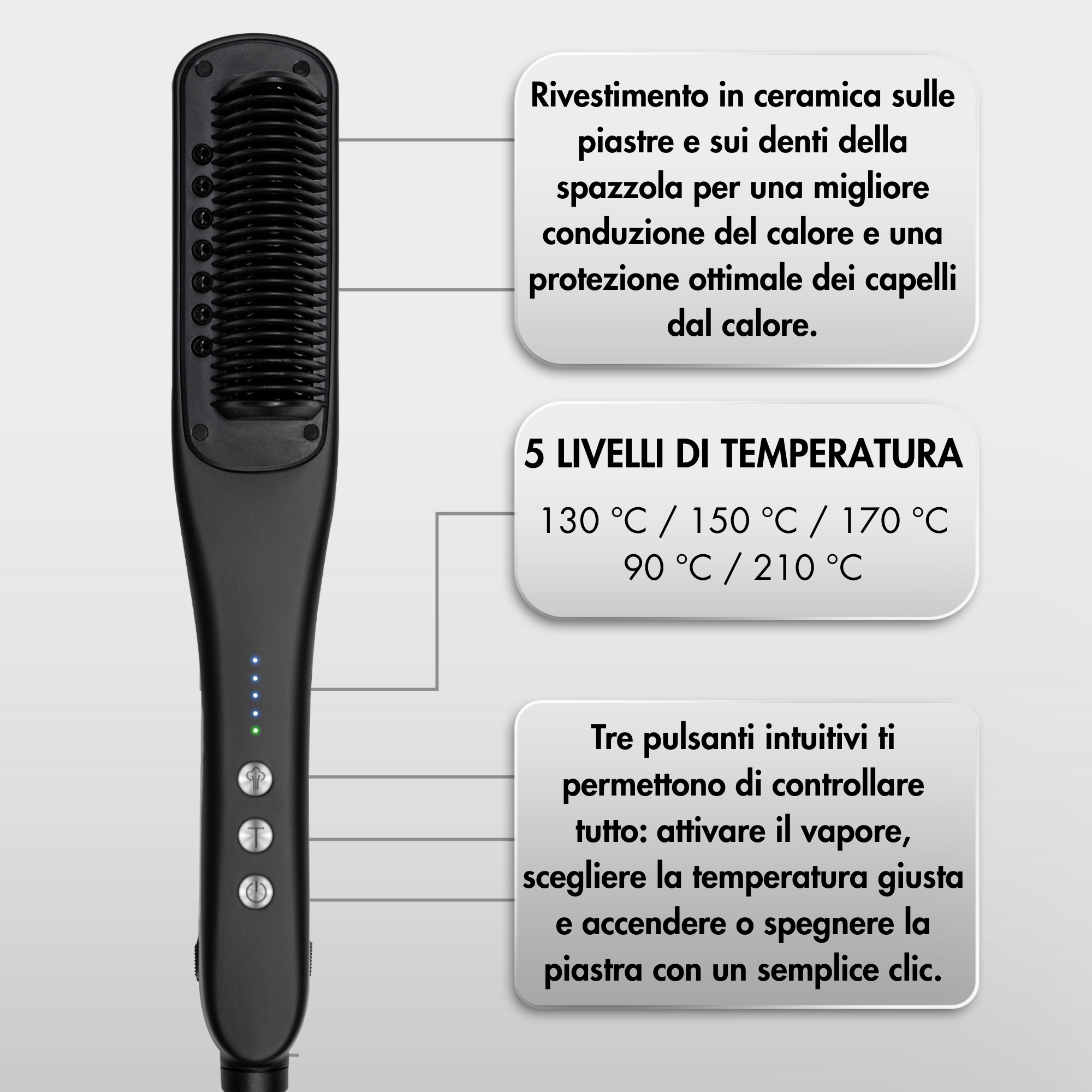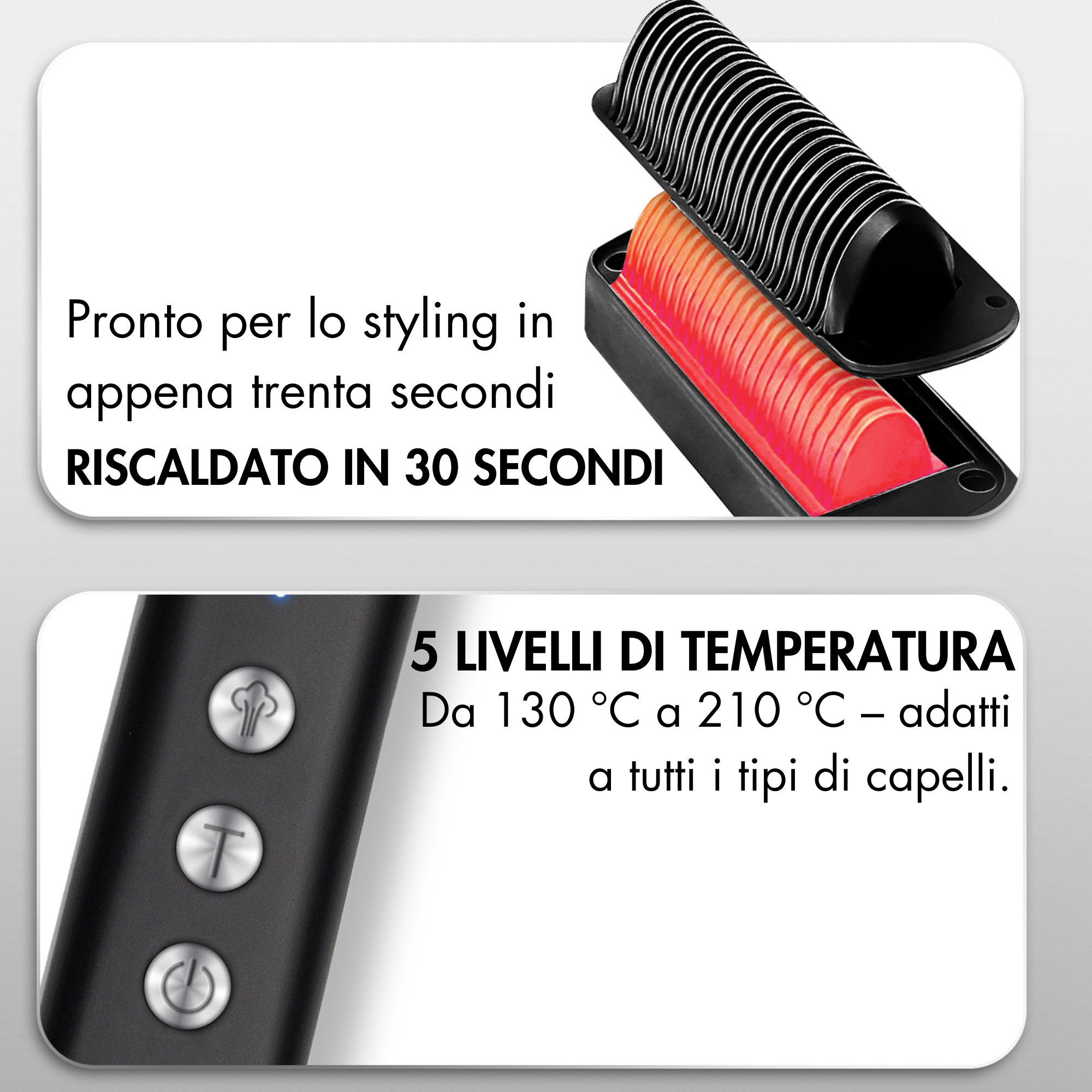 - Capelli sani e lucenti – la tecnologia innovativa a vapore idrata i capelli durante lo styling e previene secchezza e danni da calore.