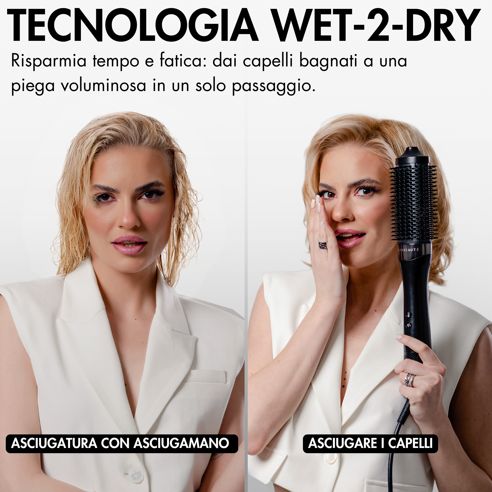 - Più veloce – Asciuga e acconcia contemporaneamente, ideale per mattine impegnate o appuntamenti dell’ultimo minuto.