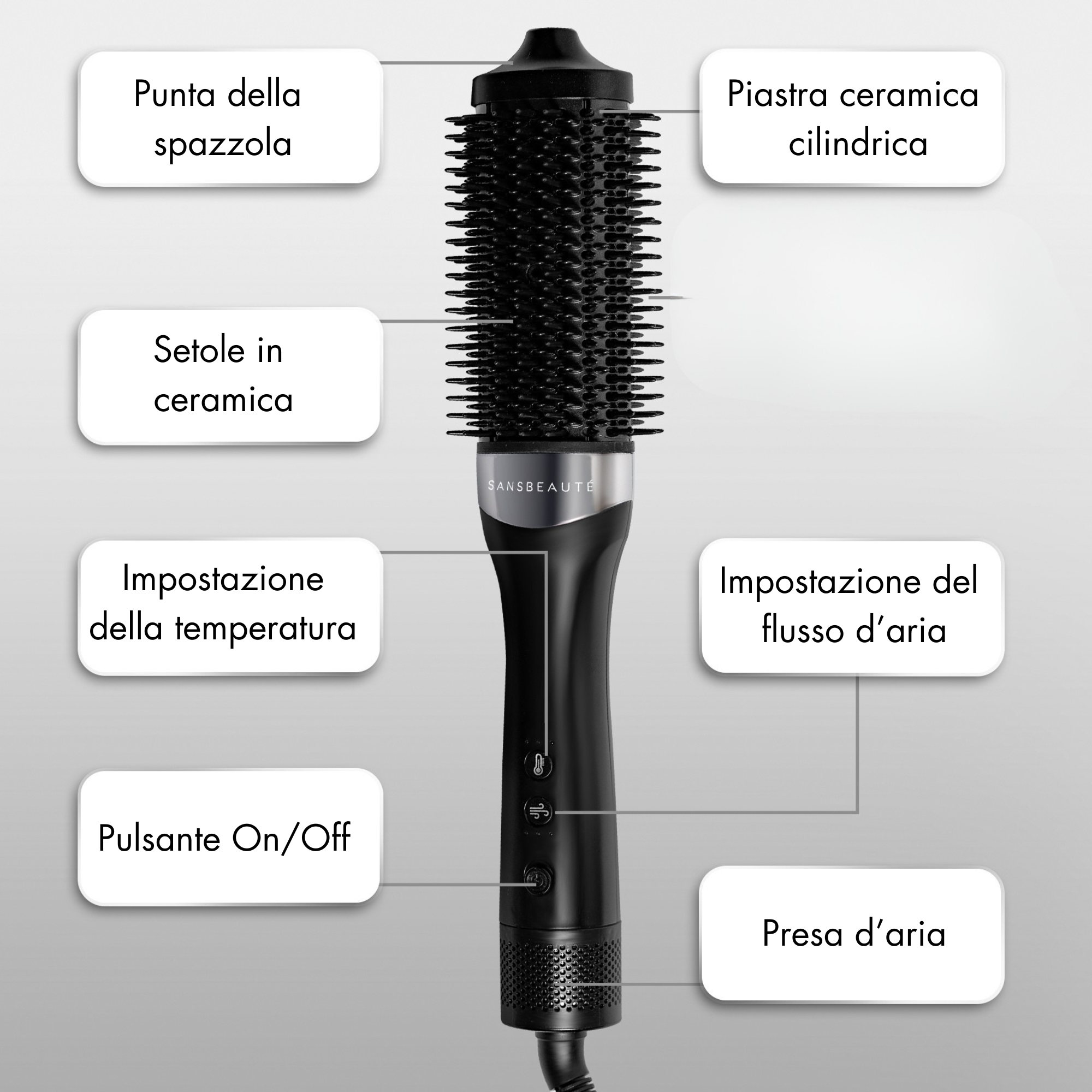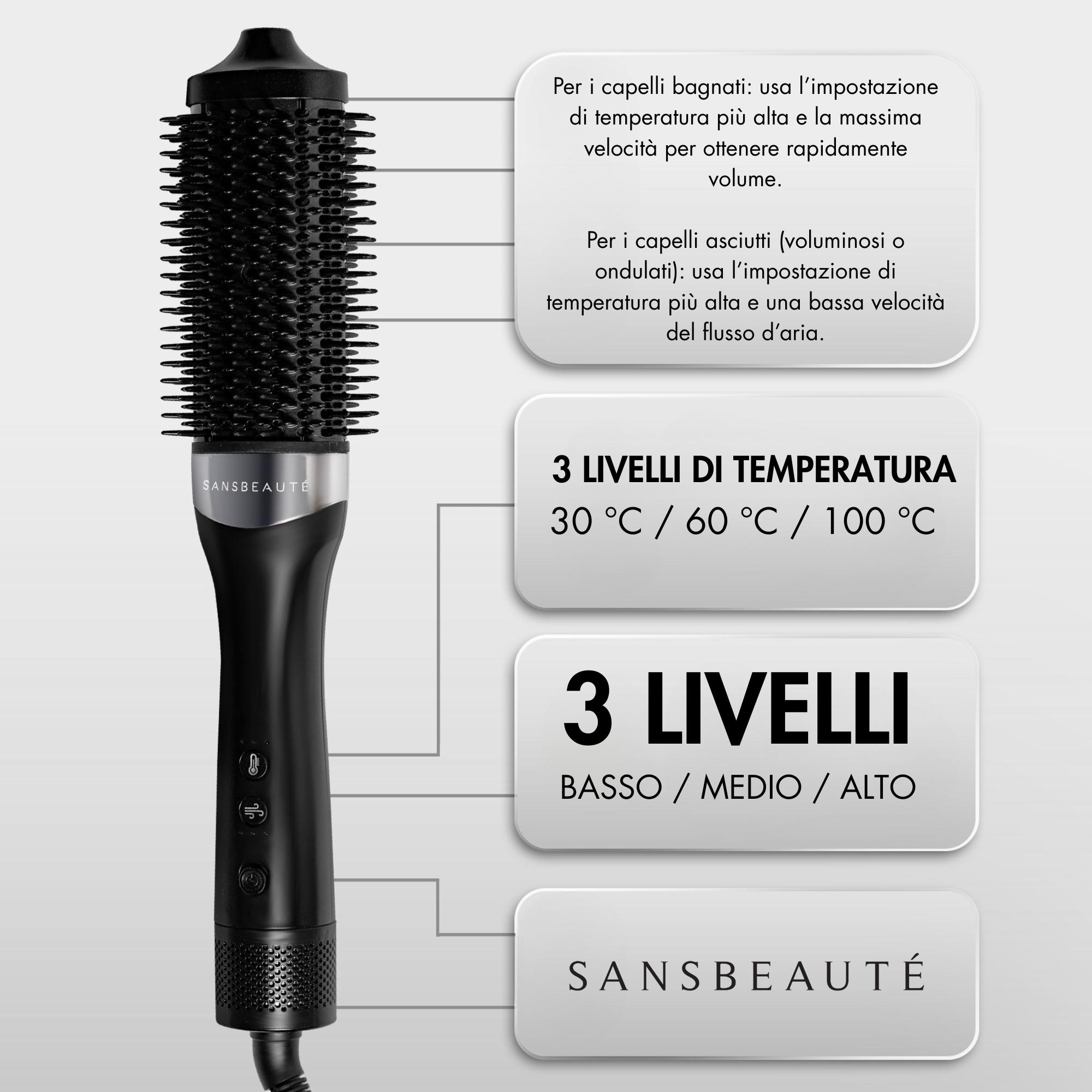 - Adatto a ogni tipo di capello – Fini, spessi, mossi o ricci: la spazzola asciugacapelli Sansbeaute offre risultati visibili.