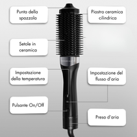 - Testa ovale con rivestimento in ceramica – Crea volume, onde o liscezza senza più strumenti.