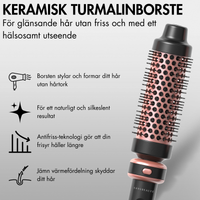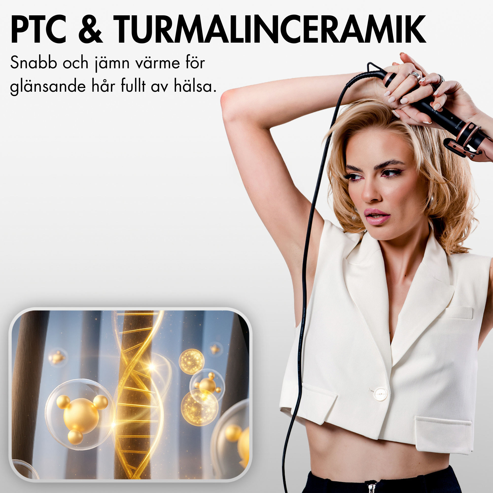 Styling med höga temperaturer torkar ofta ut ditt hår. Sansbeaute® 6-i-1 använder PTC-värme och Tourmaline Ceramic, vilket gör att värmen fördelas jämnt. Inga extrema toppar som torkar ut håret – utan mjukare styling och en naturlig glans.