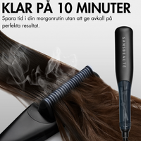 Är du trött på att kämpa i evigheter på morgonen med frissigt eller livlöst hår som ändå tappar formen, eller rädd att värme ska skada ditt hår permanent? Med Sansbeaute® Ångstyler Pro är det ett minne blott. Den smarta ångteknologin återfuktar ditt hår under stylingen, vilket gör det snabbare slätt, håller formen längre och bevarar dess naturliga glans och hälsa. Så sparar du värdefull tid varje dag, undviker skador och njuter av salongsvärdiga resultat, utan dyra frisörbesök, helt enkelt hemma till ett överkomligt pris.