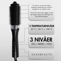 Letar du efter en fönborste som påskyndar din hårvårdsrutin, ger volym och ett frissfritt resultat – utan skada? Sansbeaute® Fönborste är den ultimata 3-i-1-lösningen för alla som snabbt och enkelt vill gå från handdukstorrt till salongsvärt hår. Tack vare den smarta kombinationen av varm luft, ett ovalt borsthuvud och trasselfria borststrån torkar, borstar och stylar detta verktyg ditt hår i ett enda drag. Inget mer krångel med separat fön och rundborste, ingen överhettning, inget friss. Bara friskt, glänsande hår som håller formen hela dagen – även när du har bråttom. Oavsett om du har fint, tjockt, lockigt eller frissigt hår: denna fönborste anpassar sig och ger synligt resultat från första användningen.