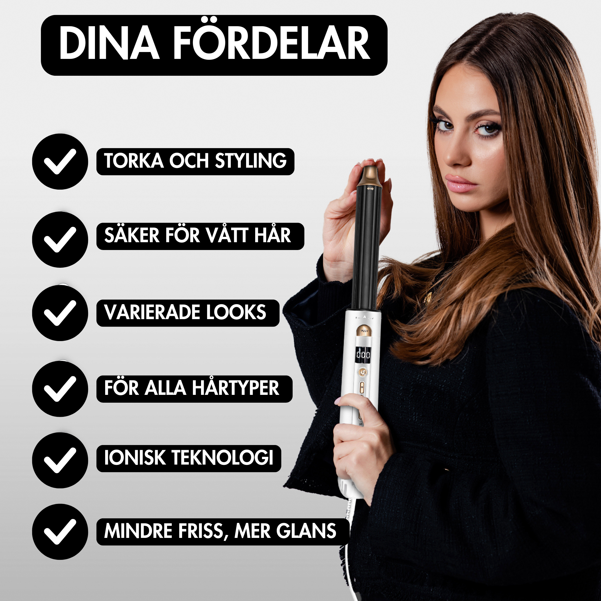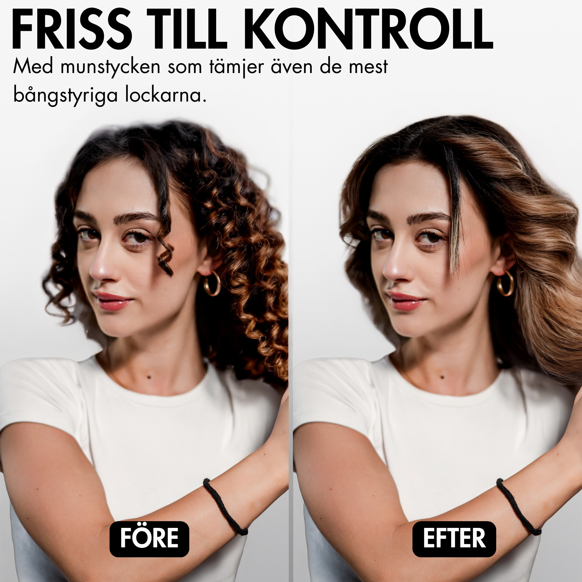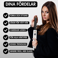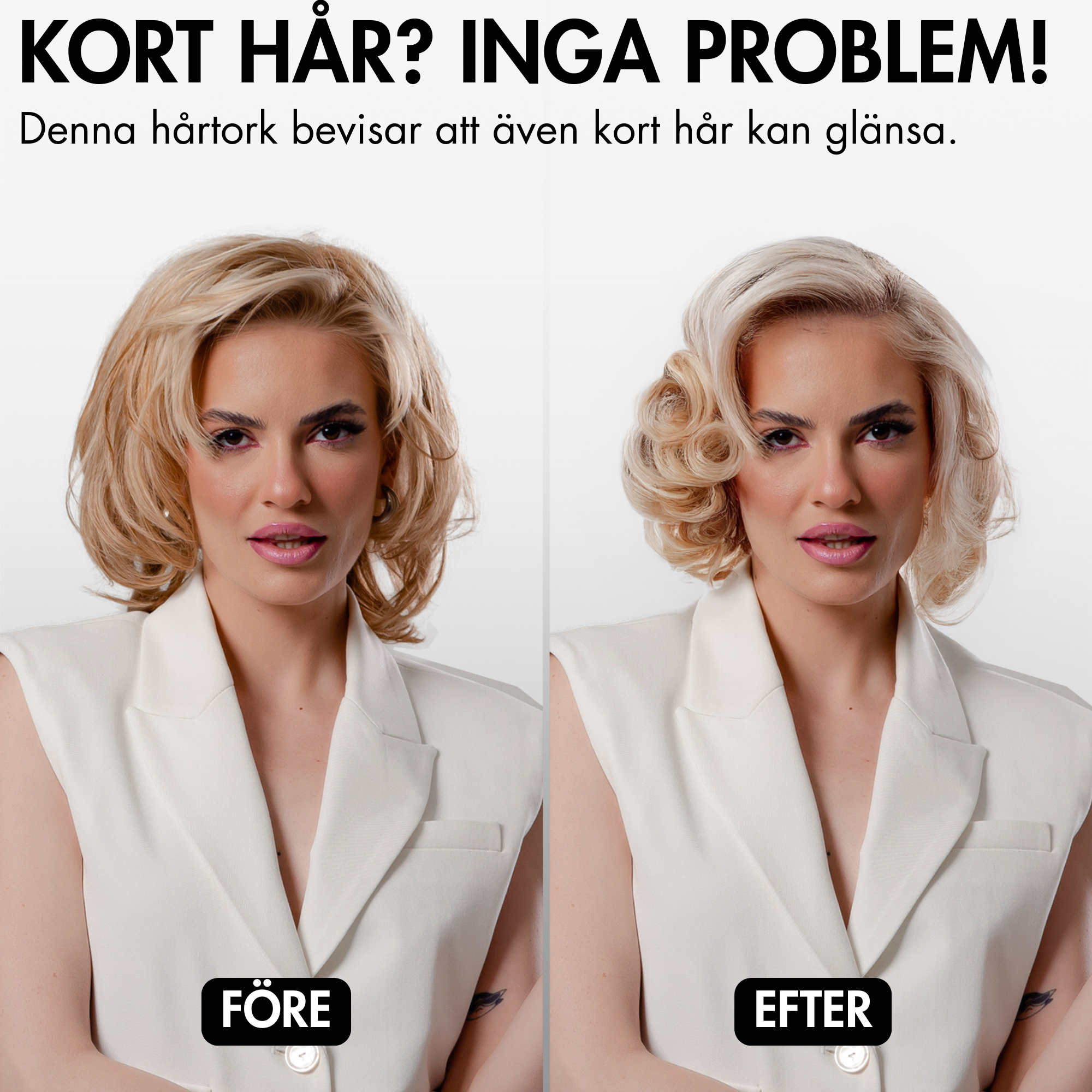 Temperaturen anpassar sig automatiskt till ditt hår — ingen onödig värme, men synlig skillnad.