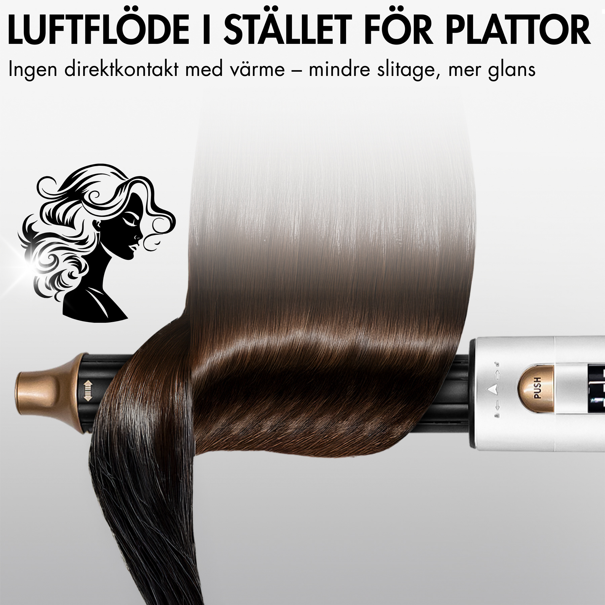 Luftflödet förhindrar luddet och framhäver ditt hårs naturliga glans.